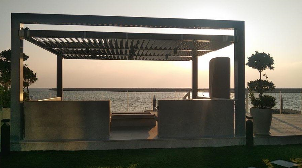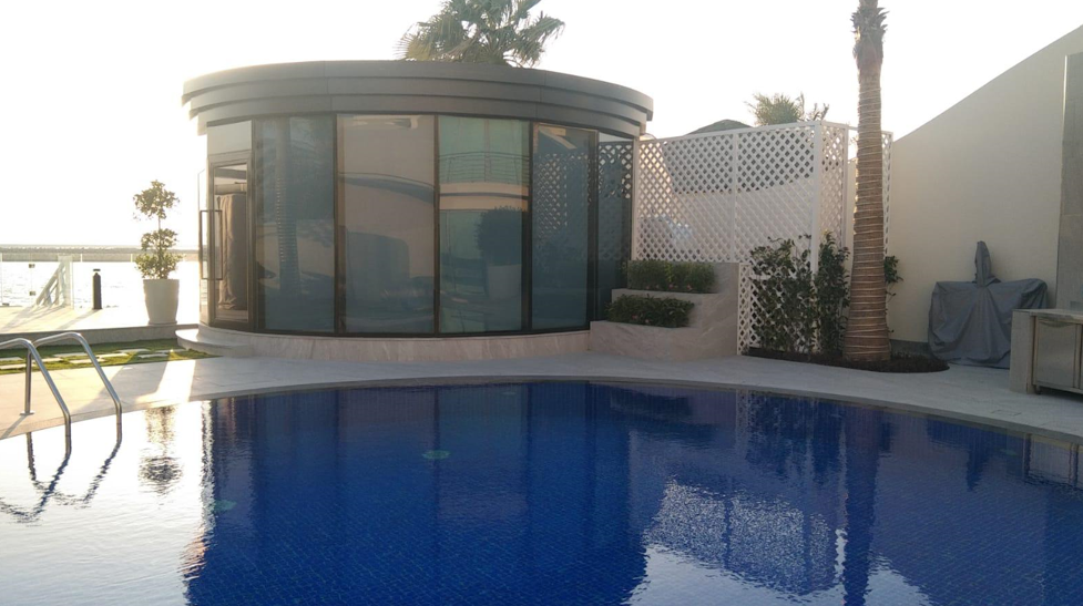 Work: Aluminum and Steel Round Conservatory, Glass Handrail and Pergola.